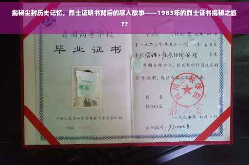 时光荏苒,岁月如梭,当我们回望历史的长河,总有一些英雄烈士的事迹令人肃然起敬,我们将聚焦于一份尘封已久的烈士证明书,透过这份证明书的背后,探寻一位英勇烈士的故事,感受那个时代的英雄情怀,这份证明书来自八三年,见证了那段波澜壮阔的历史,让我们一起走进这份烈士证明书背后的感人故事。