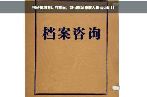 摘要:本文将介绍如何撰写年收入提高证明,并揭示成功背后的故事。通过简单的语言和清晰的逻辑,本文将指导读者如何有效地展示自己在过去一年中收入的增长情况,包括具体数字、增长幅度和成功的原因。本文将分享一些成功案例,帮助读者了解如何将自己的成功故事呈现得更加生动和引人入胜。无论你是职场人士还是创业者,本文都将为你提供有价值的建议和启示。
