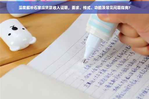 摘要:,,本文介绍了石家庄贷款收入证明的深度解读,包括其要求、格式、作用及常见问题。文中详细阐述了如何开具贷款收入证明,包括注意事项和常见问题解答。读者可以通过本文了解贷款收入证明的重要性,以及如何在申请贷款时正确、有效地提供收入证明,从而提高贷款申请的成功率。