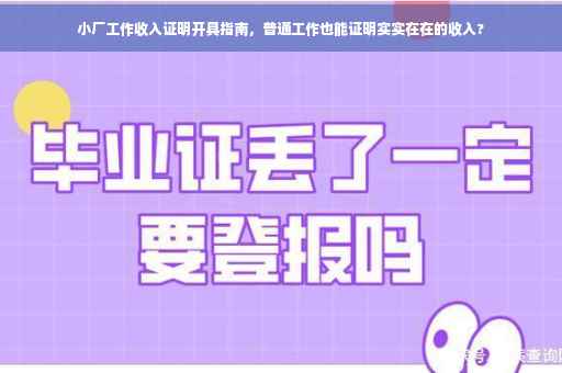 随着经济的发展和社会的进步,越来越多的人选择在小厂工作,这其中不乏许多优秀的员工,在一些人眼中,小厂工作的员工往往难以获得与大企业相同的待遇和尊重,其中最为明显的一点就是在需要开具收入证明时,小厂员工的收入证明往往难以得到认可,我要为大家讲述的正是这个话题——小厂上班也能开出实实在在的收入证明。