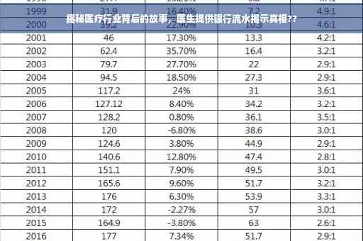 一则关于医生提供银行流水的新闻引发了广泛关注,在我们的社会中,医生这一职业一直与高尚的医德和精湛医术紧密相连,近期这一群体却出现了提供银行流水的情况,这引发了人们的好奇和疑惑,背后究竟隐藏着怎样的故事?本文将带您深入探究,揭开医疗行业鲜为人知的一面。