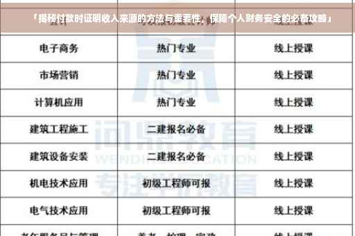 Q: 收入证明有哪些形式?A: 收入证明的形式包括工资条、银行流水账单、公司开具的收入证明等,Q: 企业付款时需要提供哪些资料?A: 企业付款时需提供财务报表、税务记录、业务凭证以及银行对账单等资料,Q: 如何确保收入来源证明的合法性?A: 遵守相关法律法规,如实申报并缴纳相应税款,选择合法合规的机构或平台开具相关证明文件,确保证明的合法性,在付款时证明收入来源是十分重要的,我们应该充分了解并遵守相关规定以确保自身权益不受损害,本文旨在为读者提供有益的指导和帮助,无论是个人还是企业在进行经济交易时都应充分准备并妥善保管相关证明文件以确保交易的顺利进行并降低风险。