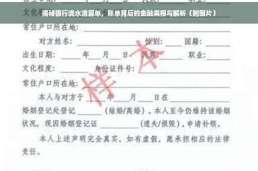 摘要:本文将揭示银行流水清算单的真相,深入了解这份账单背后的金融细节。通过解读银行流水清算单,我们将揭示账单中的各项交易细节,包括收入与支出情况,帮助读者更好地理解个人财务状况。本文还将附上银行流水清算单的图片,以便更直观地了解相关内容。通过阅读本文,您将更好地掌握个人财务管理技巧,做出明智的金融决策。