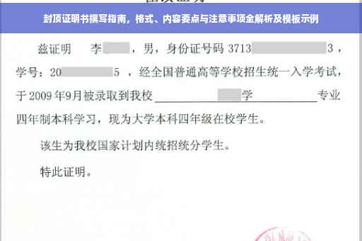 摘要:本指南旨在帮助撰写封顶证明书,提供详细的格式、内容要点及注意事项。通过本指南,您将了解到如何规范撰写封顶证明书,包括证书的基本结构、必要信息和要求。还提供模板供您参考,方便您快速完成封顶证明书的撰写工作。