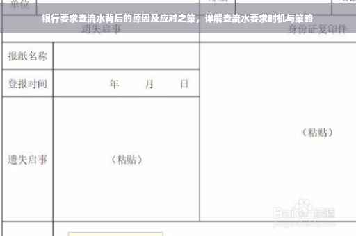 在办理贷款、信用卡等金融业务时,银行流水往往成为一项重要的评估依据,银行为什么会要求查流水?本文将为您深入解析银行要求查流水的原因,以及应对之策,助您更好地了解银行流水的重要性及其在金融业务中的应用。