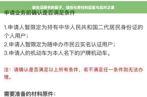 摘要:本文探讨了购买箱子时缺少证明书的问题,引发了对信任与责任的思考。面对这种情况,消费者应如何应对,以及商家应承担的责任,成为关注的焦点。文章提醒消费者在购买商品时需留意相关证明文件,并倡导商家诚信经营,增强责任感。