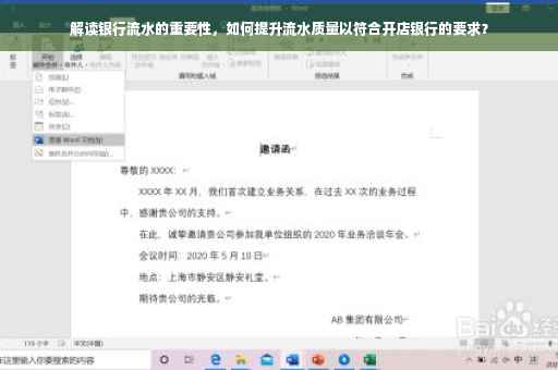 银行流水在创业开店过程中起着至关重要的作用,创业者需要通过多种手段提升流水质量,以获得银行的信任和支持,顺利实现创业目标。