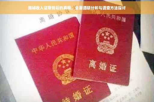 摘要:本文将揭示收入证明背后的真相,通过全面的调研分析,探讨收入证明的调查方法和注意事项。文章将介绍如何核实收入证明的真实性,包括从哪些渠道获取有效信息、如何分析数据的真实性和可信度等方面。通过本文的阐述,读者可以更好地了解收入证明的重要性及其背后的真相,从而做出更加明智的决策。