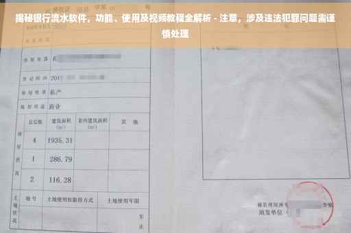 摘要:,,本文介绍了银行流水软件的功能、使用方法和视频教程的全面解析。该软件涉嫌违法犯罪问题,因此使用前需谨慎考虑。文章旨在提供相关信息,让读者了解软件的具体作用和使用方法,同时提醒公众遵守法律法规,切勿违法操作。建议通过合法途径获取银行流水记录,避免不必要的法律风险。