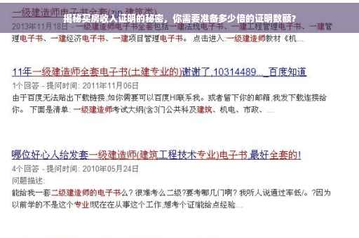 摘要:,,本文探讨了买房收入证明的秘密,揭示了准备多少倍的证明才足够应对购房过程中的各种要求。文章指出,收入证明的具体倍数因地区、房价和个人经济状况而异,需要购房者根据自身情况灵活调整。本文旨在为购房者提供有关收入证明的指导,帮助他们在购房过程中更加顺利。
