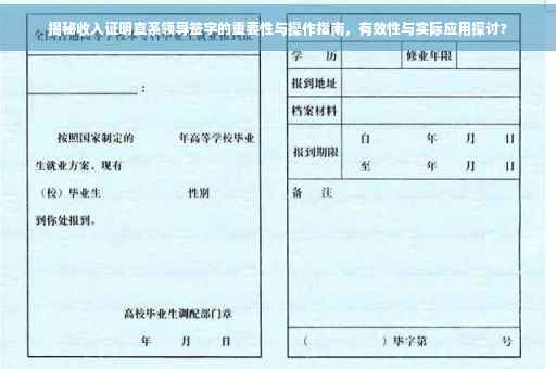 摘要:本文将探讨收入证明中直系领导签字的重要性,并给出实际操作指南。文章指出,直系领导签字是确认员工收入情况的重要环节,具有法律效力。本文还将介绍如何正确操作以获得有效的收入证明,包括选择合适的证明形式、填写准确的个人信息和收入情况等。阅读本文,将帮助您了解收入证明中直系领导签字的相关知识和操作流程。