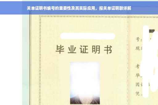 除了内部管理、海关监管和贸易双方交流外,关单证明书编号还在数据分析与决策支持方面发挥着重要作用,企业可以利用编号数据,对贸易活动进行深入分析,从而制定更为精准的市场策略,关单证明书编号也是企业信用建设的重要组成部分,规范使用编号有助于提升企业的信誉和竞争力。