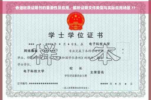 摘要:香港材质证明书是一种重要的证明文件,用于确认物品的材料成分和品质,广泛应用于贸易、制造、建筑等领域。这种证明文件具有法律效力,能够保障消费者的权益,促进商业交易的顺利进行。香港证明文件类型多样,包括公证、认证等,材质证明书是其中之一。在实际应用中,香港材质证明书对于保障产品质量和维护企业信誉具有重要意义。