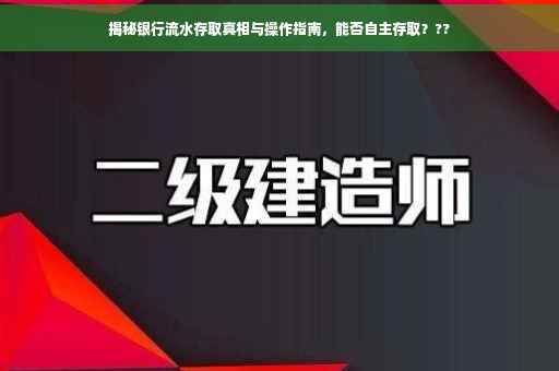 摘要:银行流水自己存取是可行的,但需要遵循一定规定和流程。本文将揭示银行流水存取的真相,提供操作指南,帮助读者了解如何正确进行银行流水存取,避免不必要的误解和麻烦。本文还将介绍相关的注意事项和常见问题解答,帮助读者更好地管理自己的银行账户。