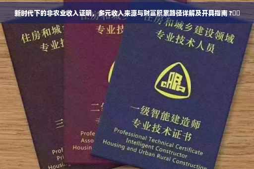 摘要:在新时代下,随着多元收入来源和财富积累路径的拓展,非农业收入证明成为个人经济能力的重要证明。非农业收入证明包括工资、经营所得、财产租赁等收入,开具时需提供相关证明材料,如银行流水、税务证明等。本文介绍了非农业收入证明的重要性及其开具流程,帮助读者更好地理解和利用这一证明,实现个人财富的持续增长。