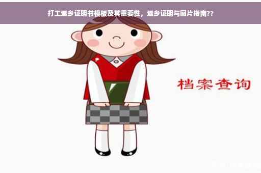 摘要:本文将介绍打工返乡证明书模板及其重要性。该模板为外出务工人员提供了一份重要的证明文件,有助于证明其工作经历、就业情况以及返乡证明等。本文还将提供模板图片,方便读者了解和使用。该证明书的重要性在于,它能够帮助返乡人员更好地融入家乡发展,促进地方经济的繁荣和稳定。