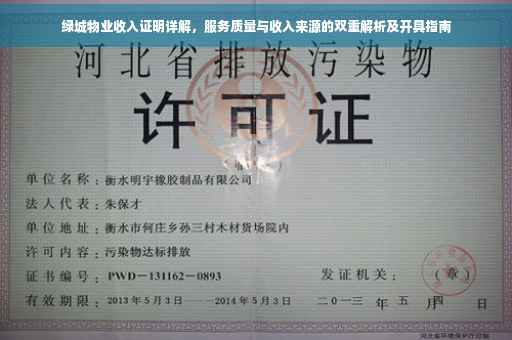 绿城物业收入证明详解:该物业公司提供全面的服务,其收入来源于服务质量和多种收入来源。本文将详细解析绿城物业的收入证明开具流程,包括服务质量和收入来源的双重考量。通过阅读本文,您将了解如何开具绿城物业收入证明,以及服务质量如何影响收入来源。??(字数控制在指定范围内)