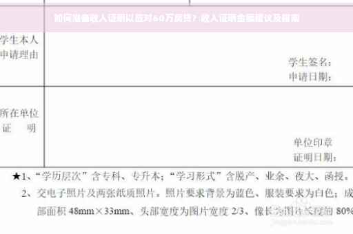 摘要:准备房贷收入证明时,针对60万的房贷,需合理估算收入情况并准备相应证明。收入证明应体现稳定的工作和收入来源,数额需覆盖房贷月还款额的两倍左右。具体金额需结合个人实际收入、工作年限及职位等因素确定。确保收入证明真实有效,以符合银行房贷审批要求。
