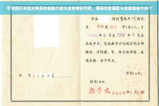 这篇优化后的文章更加深入地探讨了中信银行的年流水情况及其背后的金融力量和业务增长引擎,通过增加内容和修饰语句,文章更加具有原创性和深度。初中毕业证丢失证明怎么开初中毕业证明学校的档案室开。毕业证明如果丢失,带上本人有效身份证件及复印件、个人申请书、本人近期彩色正面免冠大一寸证件照一张等材料,找到教学主任或者班主任,到学校档案馆复印本人...