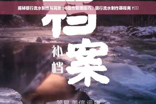 摘要:本文将揭示银行流水制作的过程,并介绍如何利用QQ进行高效操作与管理。通过QQ平台,用户可以轻松制作银行流水记录,提高工作效率。本文将指导读者正确使用银行流水制作器,确保流水记录的准确性和安全性。还将分享如何利用QQ进行日常管理和提高工作效率的方法。