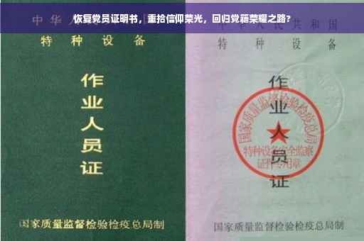 在当代社会背景下,党员作为先锋模范,肩负着推动社会进步和服务人民的使命,由于种种原因,有些党员可能会暂时与党组织失去联系,甚至放弃党员身份,为了鼓励这些党员重拾信仰,回归党组织,恢复党员证明书制度应运而生,本文将详细介绍恢复党员证明书的相关内容,帮助广大党员了解如何重拾党员身份,并探讨其背后的深层意义。