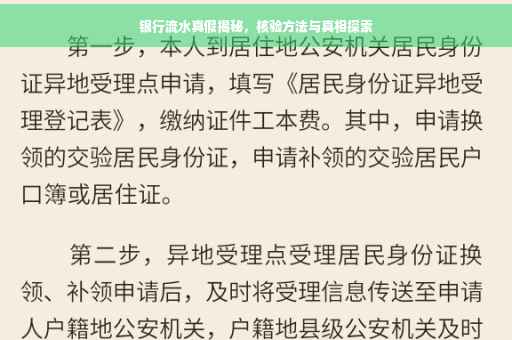 随着金融行业的飞速发展,银行业务需求日益增长,银行流水作为个人或企业经济活动的记录,广泛应用于贷款、信用卡申请及业务合作等领域,这也带来了挑战,如流水真实性核验的难度增加和虚假流水现象的频发,本文将深入探讨银行流水的核验方法,帮助公众揭开真相的面纱。