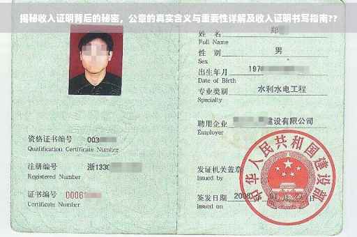 摘要:本文将揭示收入证明背后的秘密,探讨加公章的真实含义和重要性。通过深入了解,加公章作为官方认证的重要标志,能够确保收入证明的真实性和有效性。本文将介绍如何撰写加公章的收入证明,包括必要的信息和格式要求。通过阅读本文,读者可以更好地理解收入证明的重要性,并学会如何正确、规范地撰写收入证明。