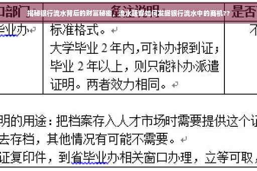 随着互联网的普及和金融行业的发展,越来越多的人开始关注银行流水这一看似平常但实际上蕴藏着巨大财富秘密的领域,银行流水,就是个人或企业在银行交易往来的记录,这些记录可能隐藏着许多不为人知的赚钱机会,本文将深入探讨银行流水背后的财富秘密,带你走进银行流水赚客的世界。