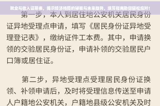 在当今社会,就业与收入问题无疑是人们最为关心的焦点之一,随着科技的飞速发展和经济环境的变化,就业市场的格局也在发生着深刻的变化,本文将围绕就业与收入证明表这一主题,探讨当前就业市场的现状、收入证明的重要性以及如何利用就业与收入证明表规划个人经济未来。