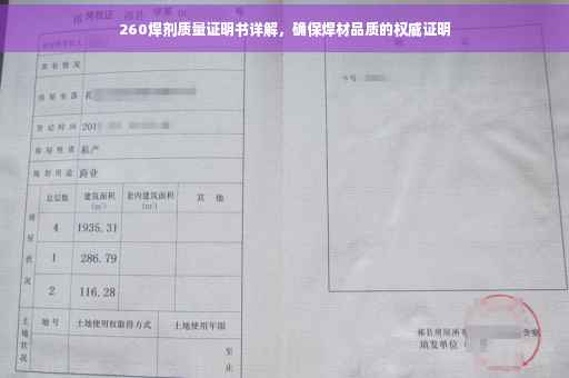 随着工业领域的飞速发展,焊接技术在各个行业中的应用越来越广泛,作为焊接过程中不可或缺的辅助材料,焊剂的质量对于焊接效果及整体工程质量具有至关重要的作用,本篇文章将详细介绍关于型号为260焊剂的质量证明书,以确保用户了解并信任该产品的质量。