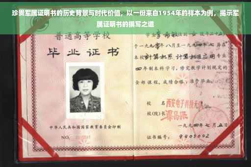 军属证明书是一份承载着历史与荣誉的重要文件,它见证了军人与其家庭为国家安全付出的辛劳与牺牲,本文将带您深入了解一份1954年的军属证明书,探寻其背后的故事与价值。