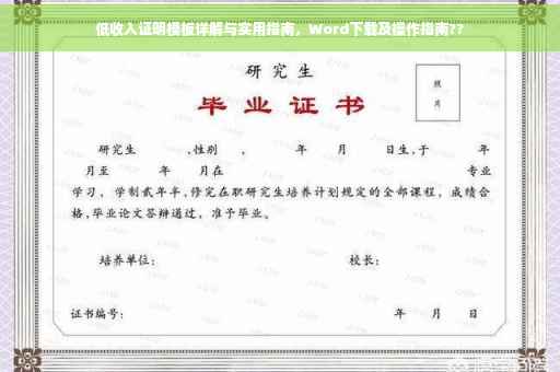 摘要:本文介绍了低收入证明模板的详解及实用指南,提供了关于低收入证明模板的详细信息,包括其用途、内容、格式等。提供了方便的word下载链接,帮助需要开具低收入证明的人快速获取模板,以便更好地完成相关申请手续。