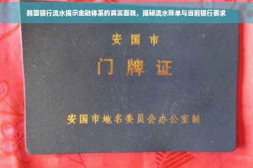 摘要:近期韩国银行流水被揭示,为我们深入了解韩国金融体系的真实面貌提供了机会。通过银行流水,我们可以观察到韩国的经济活动和资金流向。关于是否需要提供银行流水,具体情况可能因各种因素而异。本文旨在通过这一窗口,让读者更全面地了解韩国的金融体系和现状。