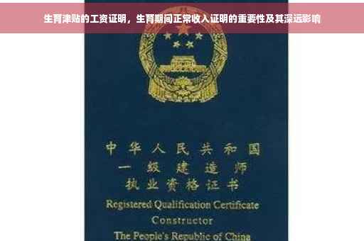 摘要:,,本文将探讨生育期间正常收入证明的重要性及其影响。对于职场女性而言,生育津贴的工资证明是确保生育期间经济稳定的关键。本文将阐述收入证明在申请生育津贴过程中的作用,以及如何影响个人和家庭的经济状况。通过深入了解正常收入证明的重要性,有助于职场女性更好地规划自己的生育与生活,确保在生育期间得到应有的经济保障。