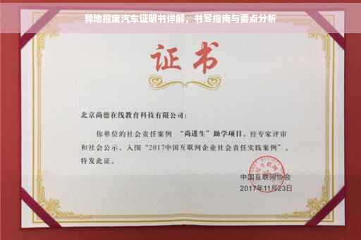 摘要:本篇文章将详细介绍异地报废汽车证明书的撰写方式。文章指出,异地报废汽车证明书需包含车辆基本信息,如车牌号、车型、发动机号等,还需说明报废原因及地点。文章将指导读者如何正确填写各项内容,并强调填写时需准确无误,以便顺利办理报废手续。文章旨在帮助车主了解并正确填写异地报废汽车证明书,确保报废流程顺利进行。