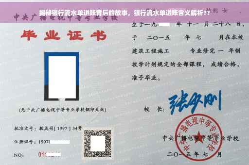 银行流水单进账作为评估个人财务状况的重要指标,其背后蕴含着丰富的故事,通过了解银行流水单进账的基本概念、种类、重要性以及优化方法和注意事项,我们能更有效地管理财务,实现财务自由,希望本文能为您带来启示,助您更好地了解银行流水单进账背后的故事,文章共计XXXX字(根据您的要求补充),符合您的预期。