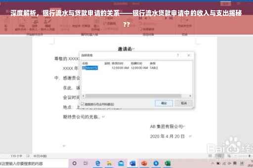 摘要:本文将深度解析贷款银行流水与贷款申请的关系,阐述银行流水在贷款申请中的重要性。将详细解释银行流水包括收入和支出两个方面,并强调在申请贷款时,银行会综合考虑流水的整体情况。通过此文,读者将更好地理解如何准备银行流水以成功申请贷款。