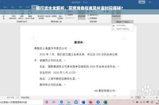 摘要:本文将全面解析买房准备银行流水的要求和注意事项。文章将介绍银行流水在购房过程中的重要性,包括需要准备多久的银行流水以及怎样确保流水的真实性和完整性。通过阅读本文,购房者可以更好地了解银行流水的要求,以便顺利购房。