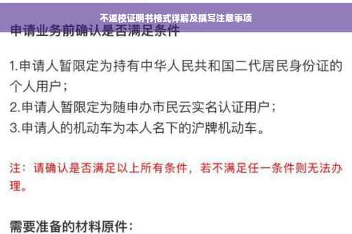 摘要:本文将详细介绍不返校证明书的格式及写作注意事项。内容包括证书标题、学生个人信息、不返校原因、日期等关键信息的正确书写方式。提醒学生在准备不返校证明书时需要注意真实、准确填写信息,避免遗漏和错误。本文旨在帮助学生顺利撰写不返校证明书,避免不必要的麻烦。