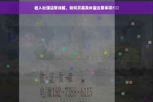 摘要:本文将为你详细介绍收入社保证明的相关内容,包括其重要性、所需材料、办理流程等。了解如何开具收入社保证明,确保你顺利享受社保相关权益。本文将为你提供详尽的步骤和注意事项,让你轻松完成收入社保证明的办理。无论你是个人还是企业,本文都将为你提供实用的指导。