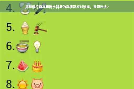 摘要:银行真实跑流水现象存在,背后涉及多种原因和真相。虽然某些情况下可能不违法,但存在风险,需警惕。应对之策包括加强监管,提高透明度,规范操作,同时个人应增强风险意识,合理使用银行服务,警惕不当行为。
