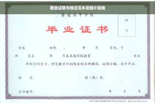 摘要:本文提供了一份释放证明书格式范本,并附上了相应的图片。这份释放证明书是一份重要的法律文件,用于证明被拘留者已经被释放。该证明书应包含必要的信息,如被释放者的姓名、拘留原因、拘留地点和释放日期等。通过提供这样的范本,人们可以更容易地了解并正确填写释放证明书,确保相关程序的顺利进行。