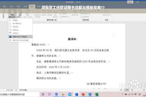 项目员工任职证明书是证明员工在项目中所担任职务及职责的重要文件,在撰写过程中,应确保信息的准确性、规范性,简洁明了地描述员工的职务及职责,希望本文能帮助读者了解如何正确、规范地出具任职证明,为项目团队的管理提供便利。