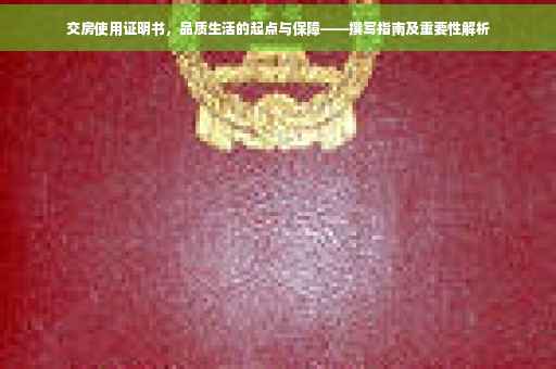 随着城市化进程的加速,购房已成为人们生活中的重要事件,交房使用证明书作为交房过程中的重要文件之一,对于购房者而言具有极高的价值,本文将详细介绍交房使用证明书的相关知识,帮助购房者更好地了解其作用、内容要点以及注意事项,确保顺利交房并享受品质生活。