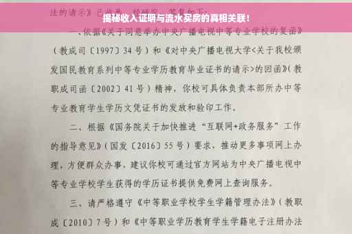 揭秘收入证明与流水买房的真相!收入证明在购房过程中至关重要,它是评估购房贷款能力的重要依据。而银行流水则是证明个人收入状况的重要凭证。本文将深入探讨收入证明与流水买房之间的关联,揭示两者之间的真实联系,帮助购房者更好地了解购房过程中的金融要求。阅读本文,了解真相,助您顺利购房!