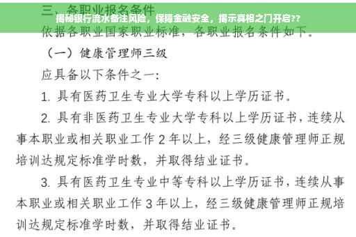 5、金融知识普及:积极开展金融知识普及活动,提高公众对银行流水重要性的认识,以及风险问题的警觉性。