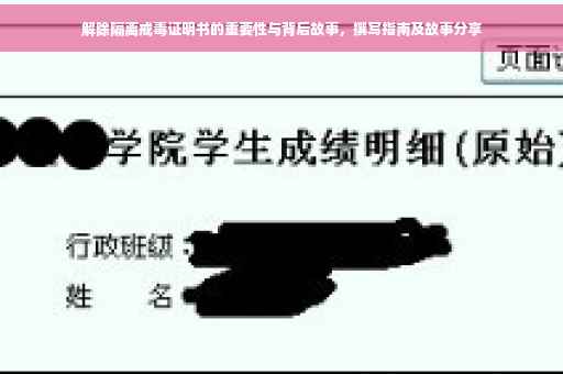 摘要:解除隔离戒毒证明书在戒毒过程中具有重要意义,它不仅是戒毒者成功完成治疗的重要标志,也是其重新融入社会的通行证。撰写此证明书需详细记录戒毒者的治疗过程、表现及成果,同时体现其积极改变和决心。背后故事则反映了戒毒者所经历的艰辛、决心与毅力,以及社会各界对戒毒工作的支持与关注。