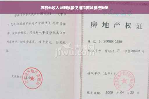 摘要:本篇文章介绍了农村无收入证明模板及其使用指南。文章指出,农村无收入证明模板是用于证明个人在农村地区没有收入的一种证明文件,适用于需要证明无收入的情况。文章提供了模板的下载链接和使用指南,详细介绍了如何填写模板,包括填写注意事项和常见问题解答。文章旨在帮助需要开具无收入证明的人们快速便捷地获取模板,并正确填写,避免因填写不当而导致的不必要的麻烦。