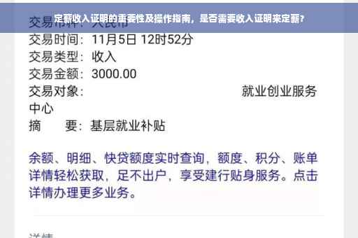 摘要:本文将介绍定薪收入证明的重要性及操作指南。定薪收入证明对于员工和企业都至关重要,它不仅能够证明员工的收入状况,还是信用评估、贷款申请等方面的关键依据。本文将指导读者如何正确操作定薪收入证明,包括了解证明内容、准备相关材料、遵循企业流程等。至于是否需要定薪收入证明,这通常取决于企业的具体政策和要求。