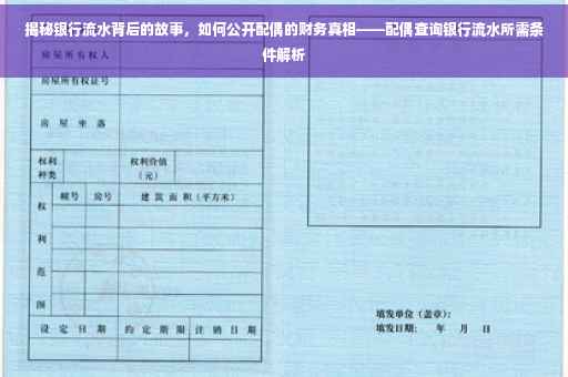 摘要:本文将揭示银行流水背后的故事,包括如何公开配偶的财务真相。通过解析银行流水账单,可以了解个人或家庭的资金流向和收支情况。公开配偶的财务情况对于婚姻关系中的信任和沟通至关重要。本文将介绍配偶打印银行流水账单所需的手续和注意事项,帮助读者更好地了解这一过程的细节。
